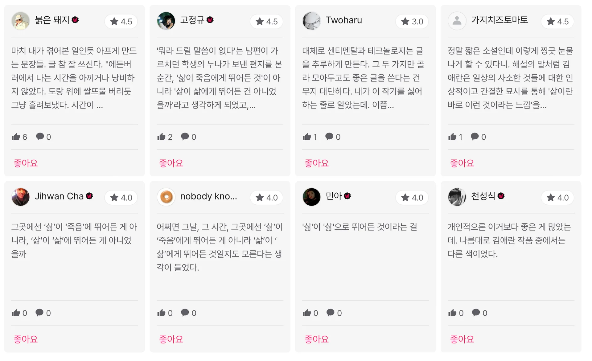 왓챠피디아의 최은영 <그 여름> 리뷰 코멘트
